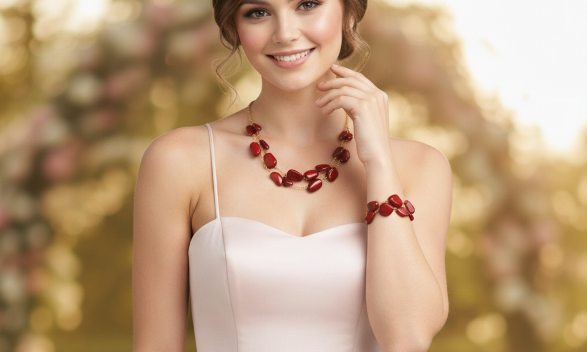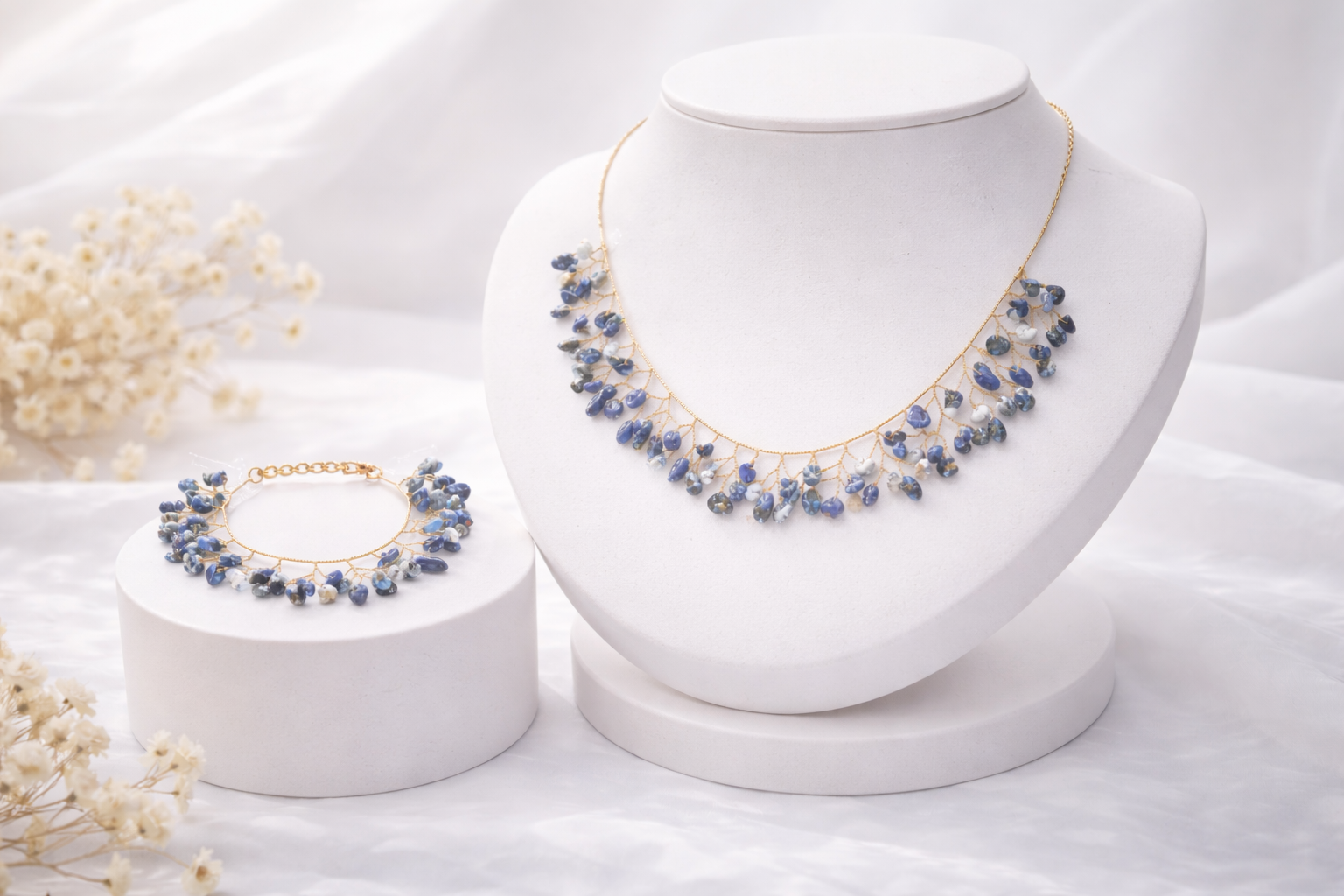 Stone Necklace and Bracelet Set for Women | Gold Tone Wire Wrapped Beaded Jewelry Set, Adjustable Chain, Fashion Accessory